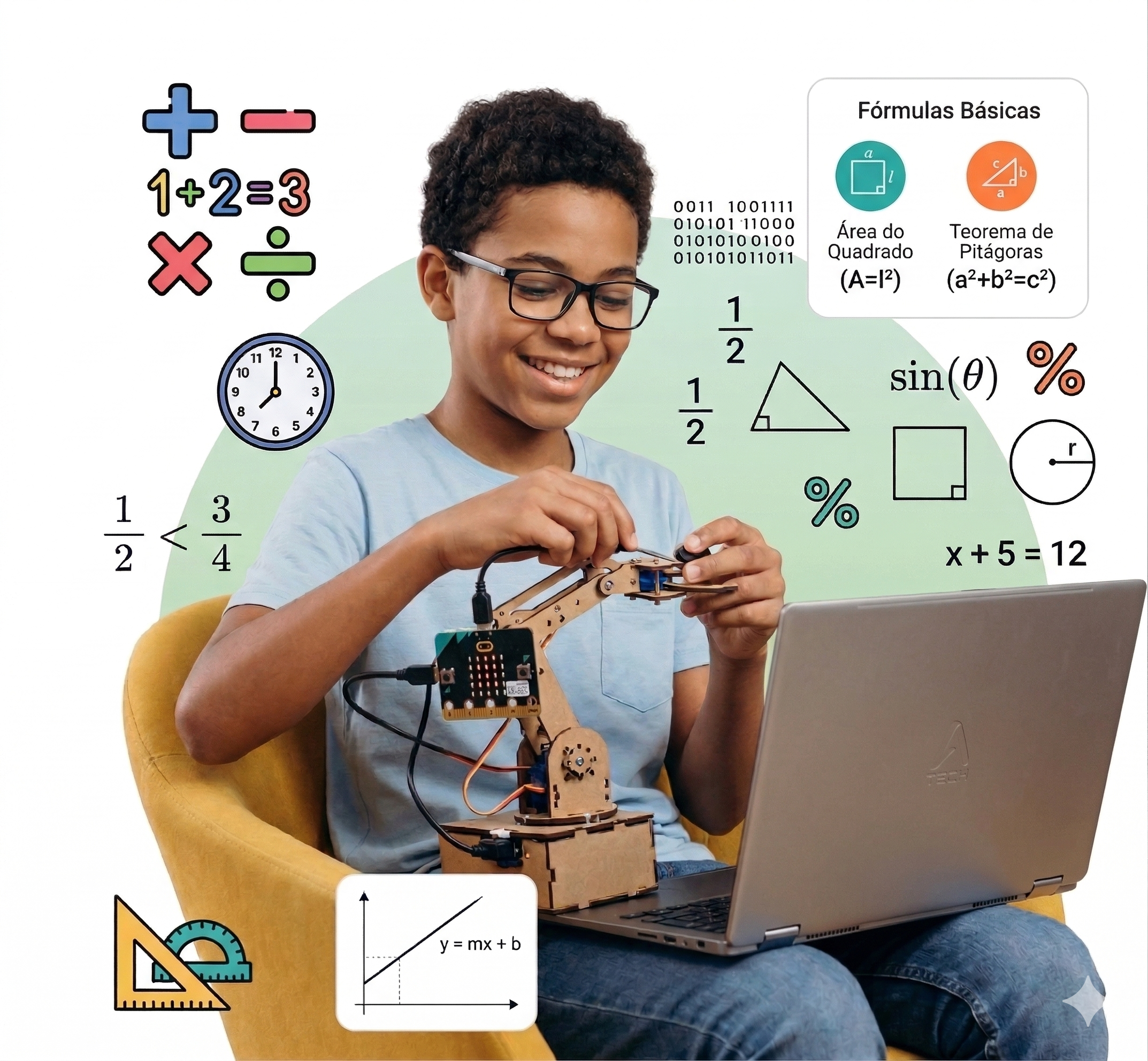Olá, eu sou o Professor Wlad meu intuito aqui é te guiar pelo fascinante mundo da Robótica e da Matemática! Ao integrar esses conhecimentos, conforme proposto pelo Currículo Paulista, desenvolvemos o raciocínio lógico e a criatividade para solucionar desafios e construir um futuro inovador.